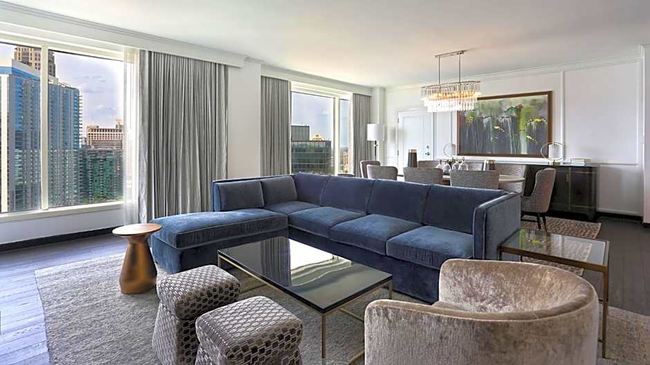 This spacious presidential suite features hardwood floors, a fireplace, and a view of the Atlanta skyline. A separate living and dining area is included as well as 2 65-inch flat-screen TVs and a private bathroom with a spa bath and rainfall shower head.